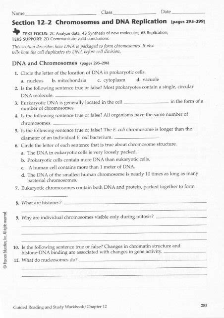 The 12 2 Chromosomes and DNA Replication Worksheet